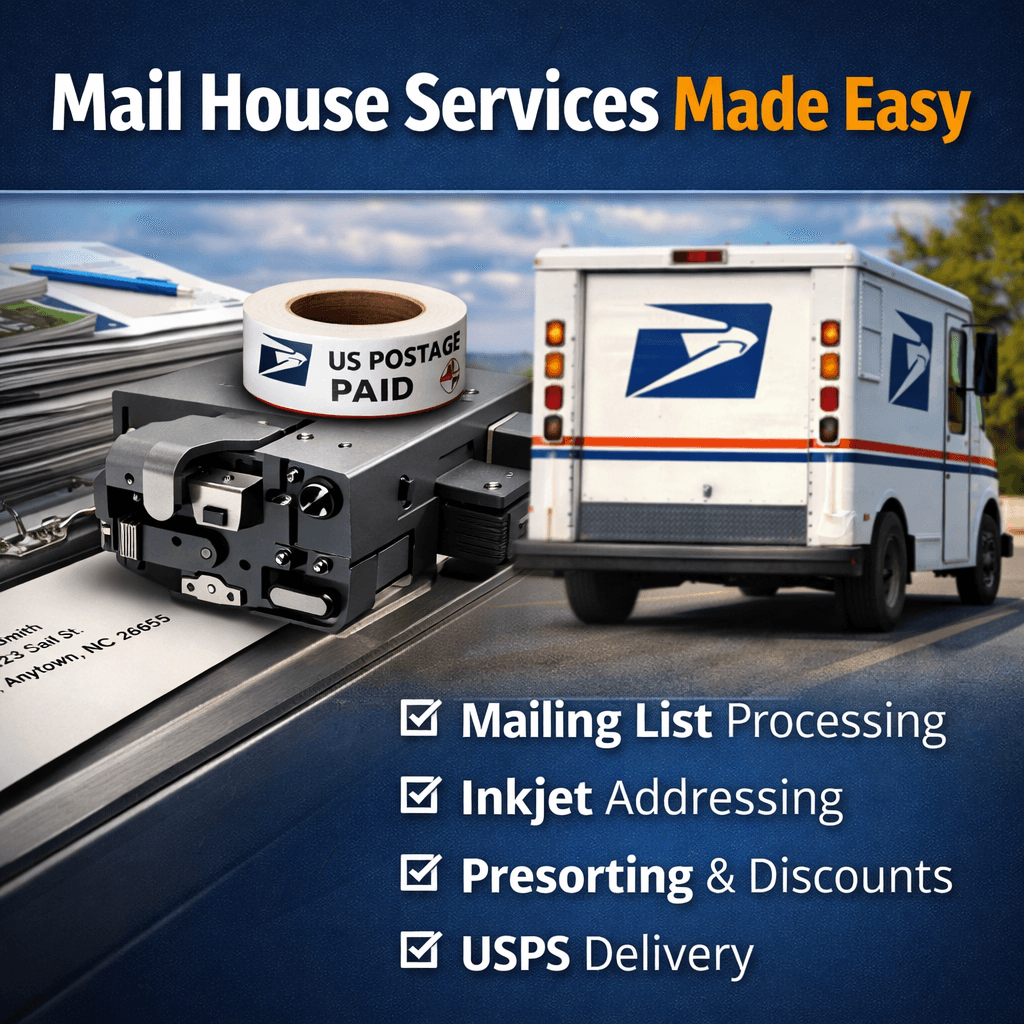 Each postcard or mail piece is personalized with recipient addresses using high-speed inkjet or digital printing. We can also incorporate variable data such as names, promotions, or unique offers.